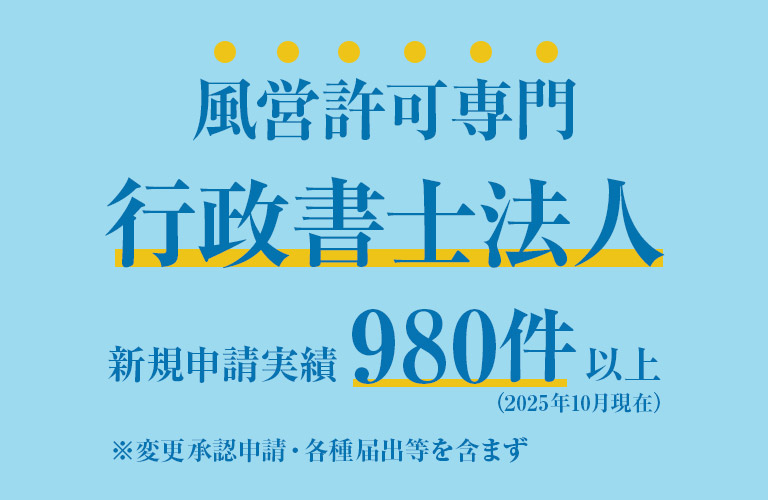 弊所は最短での許可取得を責務とし、2025年10月時点で新規の風俗営業許可申請が980件以上ございます。
